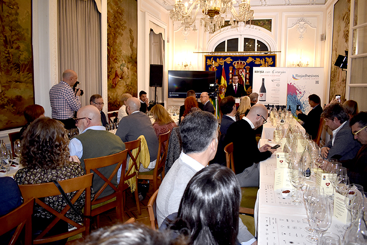 El 13 de febrero en el Salón La Lengua del Centro Riojano de Madrid, tuvo lugar la cata solidaria “RIOJA CON CORAZÓN”. Iniciativa impulsada por la empresa Riojadhesivos con el objetivo de recaudar fondos para Cáritas La Rioja. Esta acción solidaria cuenta con la colaboración de la Cofradía del vino de Rioja y el apadrinamiento del reconocido sumiller Carlos Echapresto. Las Bodegas participantes fueron: Beronia, Bodegas Muriel, Bodegas Valdemar, Faustino Rivero Ulecia y Marqués de Vargas.