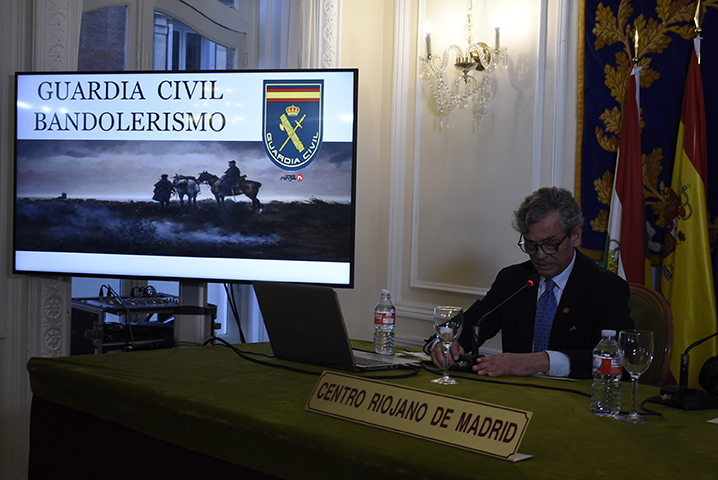 El jueves 19 de marzo de 2026 se celebró la conferencia “El bandolerismo y la Guardia Civil (siglos XVIII-XIX)”, impartida por Fran Blanco Argibay, periodista, a cargo de la Sede Territorial de Madrid de la Hermandad de Amigos del Benemérito Cuerpo de la Guardia Civil (HABECU). El acto fue presentado y presidido por Gloria Martínez-Manso, vicepresidenta del Centro Riojano de Madrid, y tuvo lugar en la Sala La Lengua a las 19:00 horas.