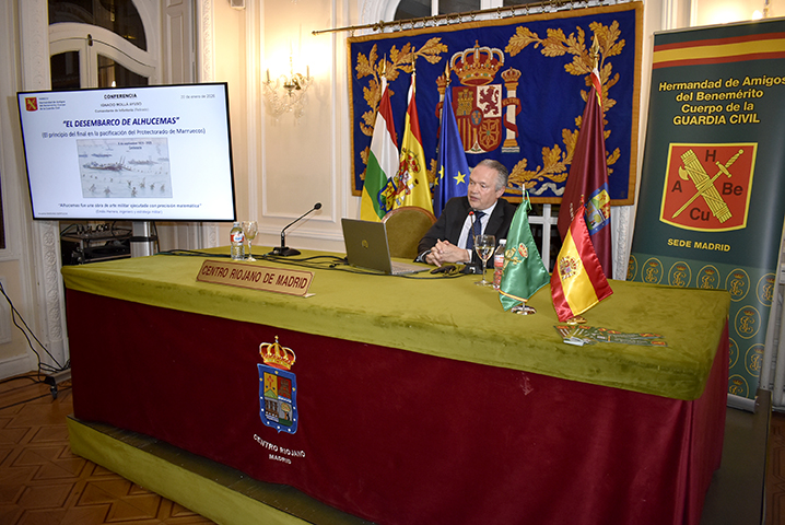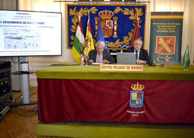 El acto fue organizado por la asociación HABECU (Hermandad de Amigos de la Benemérita Guardia Civil) y contó con la presidencia de José Antonio Rupérez Caño, Presidente del Centro Riojano de Madrid. Durante la sesión, se profundizaron en los detalles técnicos e históricos que convirtieron a este desembarco en un hito de la historia militar española.
