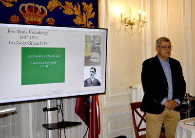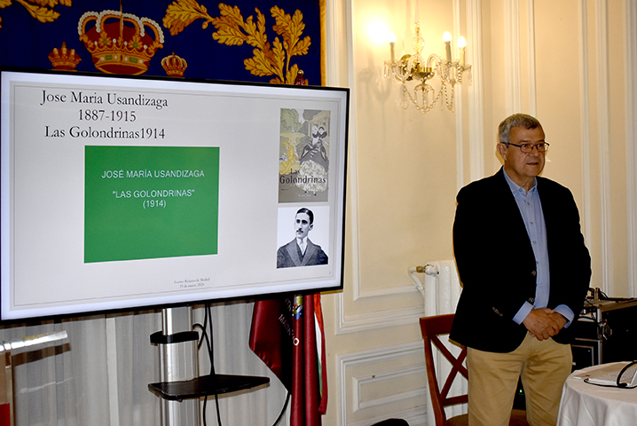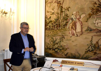 El lunes 23 de marzo de 2026 se celebró la conferencia “La zarzuela en la primera mitad del siglo XX, experiencias en los límites de la realidad (segunda parte)”, impartida por Rafael Parrilla. El acto fue presentado y presidido por Luis Fernando Leza Campos, vocal de Enología del Centro Riojano de Madrid, y tuvo lugar en el Salón La Lengua a las 19:30 horas.
