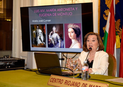 El día 28 de febrero en el salón La Lengua fue impartida por María José Canser, historiadora de Arte, Máster Universitario en Protocolo, Máster en la Industria de la Moda, una CONFERENCIA con el título “LUIS XIV”. Presentó el acto Gloria Martínez-Manso Tricio vicepresidenta del Centro Riojano de Madrid.