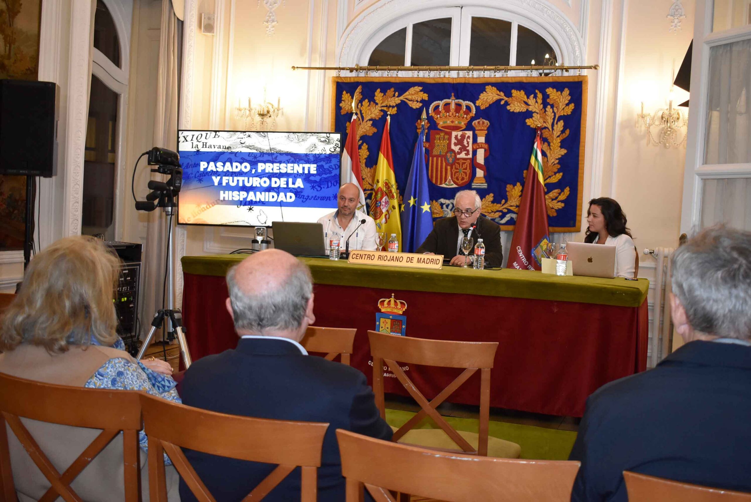 En el Salón La Lengua del Centro Riojano de Madrid, ha tenido lugar la Conferencia “PASADO, PRESENTE Y FUTURO DE LA HISPANIDAD” Impartido por Patricio Lons y Manuel Serna Vega. Presentada por Sonsoles Queipo de Llano.