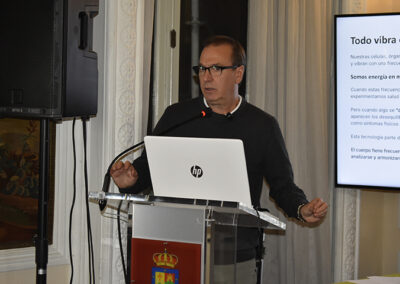 El pasado lunes 3 de noviembre se celebró en el Salón La Lengua la conferencia titulada «¿Y si la salud no fuera solo química?», un diálogo que exploró la relación entre ciencia, energía y conciencia en el marco de la medicina integrativa. La jornada contó con las ponencias del Dr. Sergio Mejía Viana (médico especialista en cardiología y medicina integrativa), Mar Bergara (médico pediatra especialista en salud integrativa), Africa Jareño Ruiz (técnico superior en dietética y experta en biorresonancia), David Alcalá (profesor investigador experto en biorresonancia) y Francisco Expósito (experto en paraprobióticos). Al finalizar el acto, se sirvió un vino de Rioja a los asistentes. El evento fue presentado por José Antonio Rupérez Caño, Presidente del Centro Riojano de Madrid.