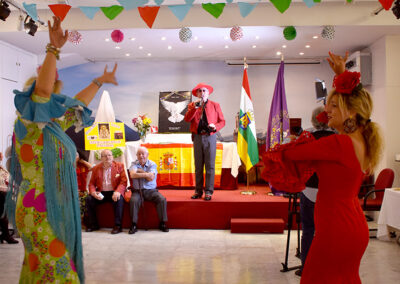 El 20 de mayo en el Salón Gonzalo de Berceo se celebró la FIESTA ROCIERA. Hubo sevillanas, flamenco, disfrutamos de la canción española con el gran cantante Paco Valenzuela y picoteo con rebujito de manzanilla.
