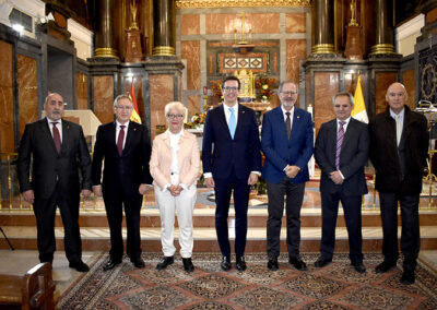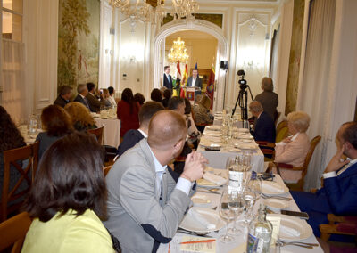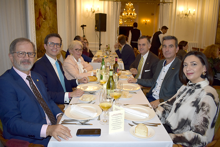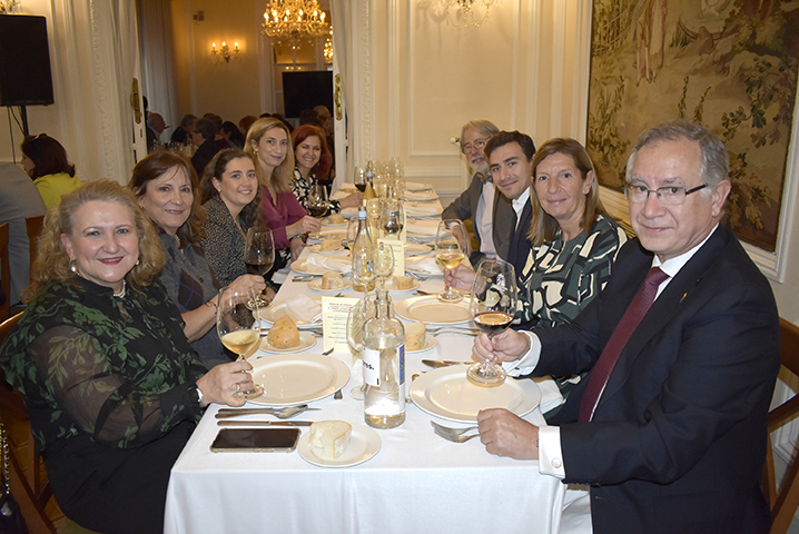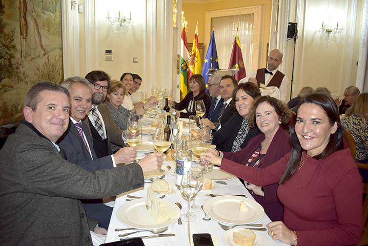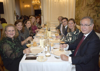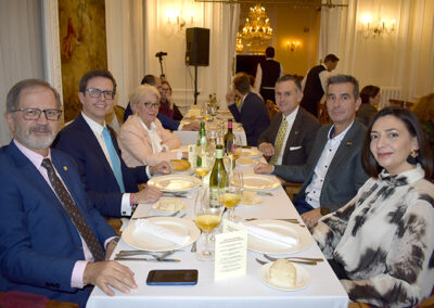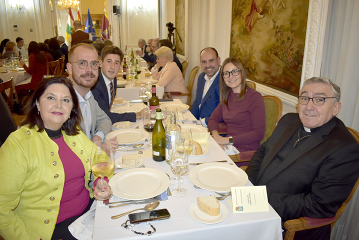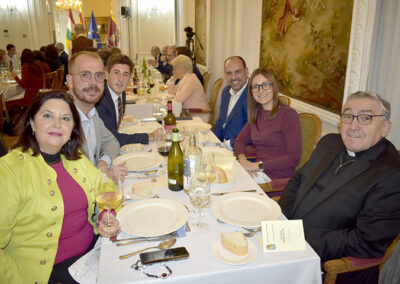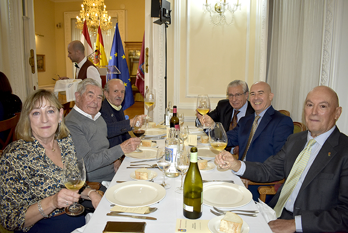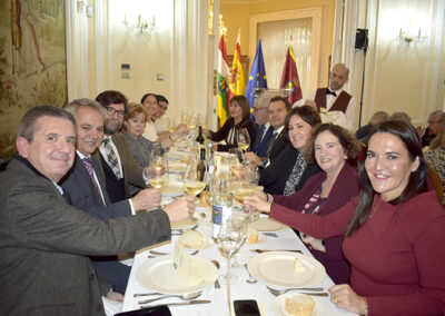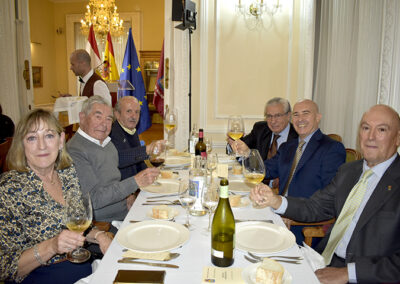 Para cerrar la festividad, a las 15:30 horas se celebró una comida de hermandad en los salones de la sede social. Los asistentes disfrutaron de un menú compuesto por buñuelos de morcilla, tartaletas de champiñones y ternera, crema de cangrejo con hinojo, mejillones y congrio, jarrete de ternera confitado con muselina de patata y setas, y tarta de calabaza con clavo y jengibre.