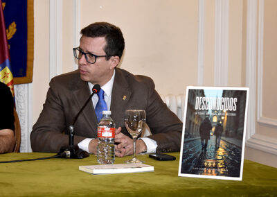 El pasado viernes 23 de enero se celebró en el Salón La Lengua la presentación de la obra titulada «Desconocidos». El encuentro literario contó con la intervención de sus autores: Francisco Mir, arquitecto técnico, geómetra y diseñador de la Ermita de La Virgen de la Esclavitud, y Juan Gurrea, profesor de guitarra española y viajero internacional.