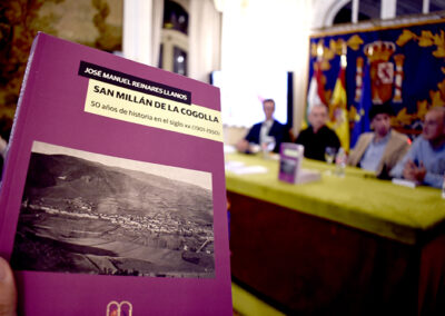 El pasado miércoles 12 de noviembre se presentó en el Salón La Lengua la obra titulada «San Millán de la Cogolla, 50 años de historia en el siglo XX (1901-1950)». Durante el acto, el autor e historiador José Manuel Reinares Llanos desgranó los detalles de esta investigación, que recorre la trayectoria de la localidad riojana durante la primera mitad de la centuria pasada, y estuvo acompañado por el editor Emiliano Navas. El evento fue presentado por José Antonio Rupérez Caño, Presidente del Centro Riojano de Madrid.