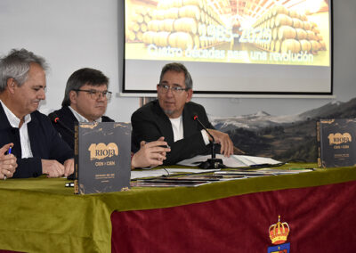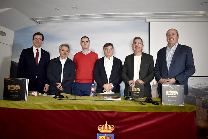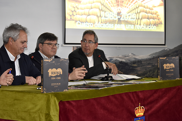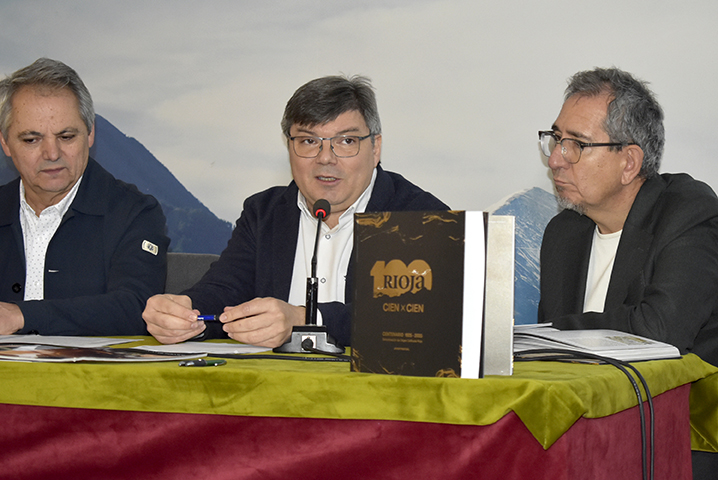 El pasado martes 25 de noviembre, el Salón Gonzalo de Berceo fue el escenario de la presentación del libro Cien años de Rioja, una obra que recorre el siglo de historia de la denominación de origen más antigua de España. El evento tuvo un carácter histórico al conmemorar simultáneamente el 40 aniversario de la presentación del primer número de la revista La Prensa del Rioja en esta misma sede en 1985. En el acto intervino el autor del libro, el periodista y escritor Javier Pascual, quien además es director honorífico de la publicación y reciente Premio de las Letras de la institución. La jornada se completó con una mesa redonda en la que participaron Javier Alonso (Director de Marketing de Gráficos de Oyón), Fernando Vega (Director de Marketing del Grupo Barón de Ley) y Jorge Solana (nuevo editor y director de La Prensa del Rioja). El acto contó con la bienvenida institucional de José Antonio Rupérez Caño, Presidente del Centro Riojano de Madrid.