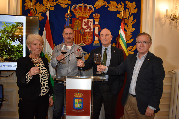 Intervino D. Enrique Artacho, director técnico de la Bodega, presentó D. Luis Fernando Leza, vocal de enología del Centro Riojano de Madrid y presidió el acto Dña. Gloria Martínez-Manso, vicepresidenta del Centro Riojano de Madrid