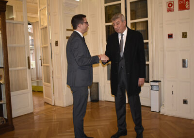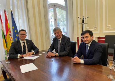 El 12 de abril en la sala de juntas del Centro Riojano de Madrid, tuvo lugar la visita-reunión del Embajador de la República de Azerbaiyan, Excmo. Sr. D. Ramiz Hasanov, Magsad Huseynov, tercer secretario de la Embajada y José Antonio Rupérez Caño, presidente del Centro Riojano de Madrid.